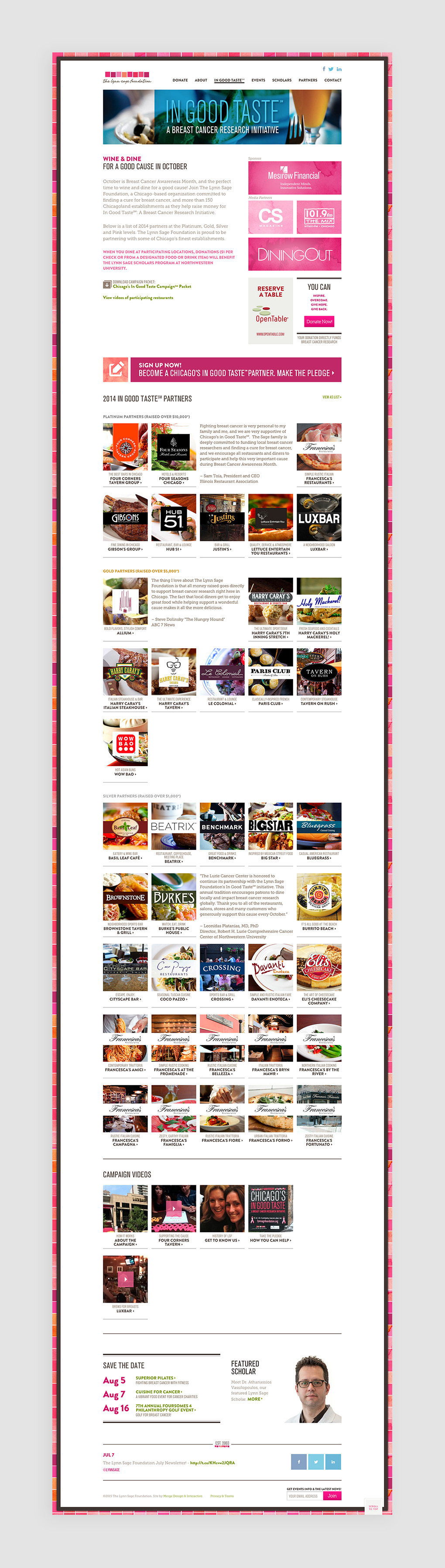 The Lynn Sage Foundation, a breast cancer charity and research foundation, wanted to refresh their website. For this site, in addition to front-end development, I implemented a custom WordPress CMS, including restaurant listings and donation forms.