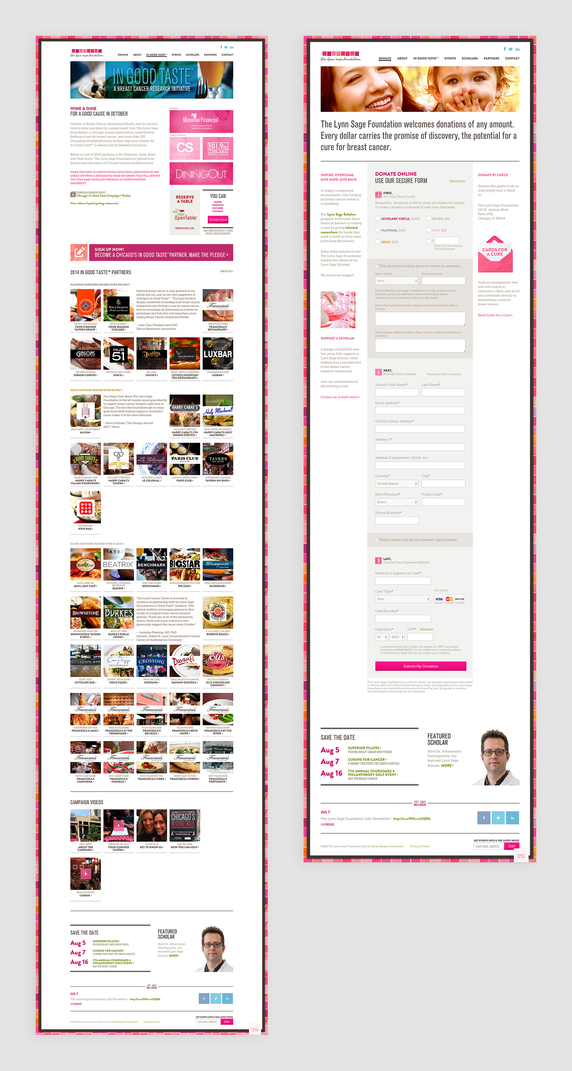 The Lynn Sage Foundation, a breast cancer charity and research foundation, wanted to refresh their website. For this site, in addition to front-end development, I implemented a custom WordPress CMS, including restaurant listings and donation forms.