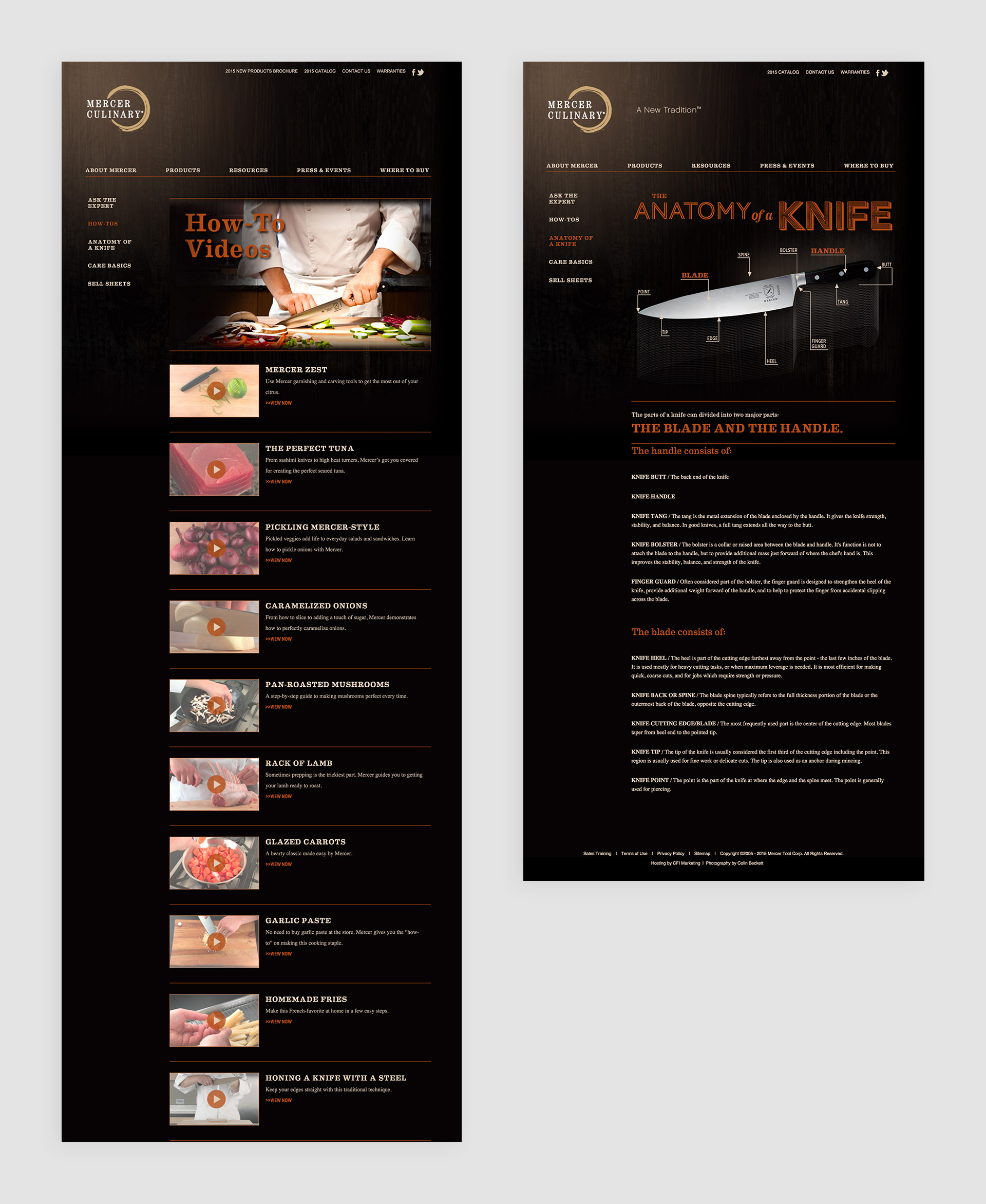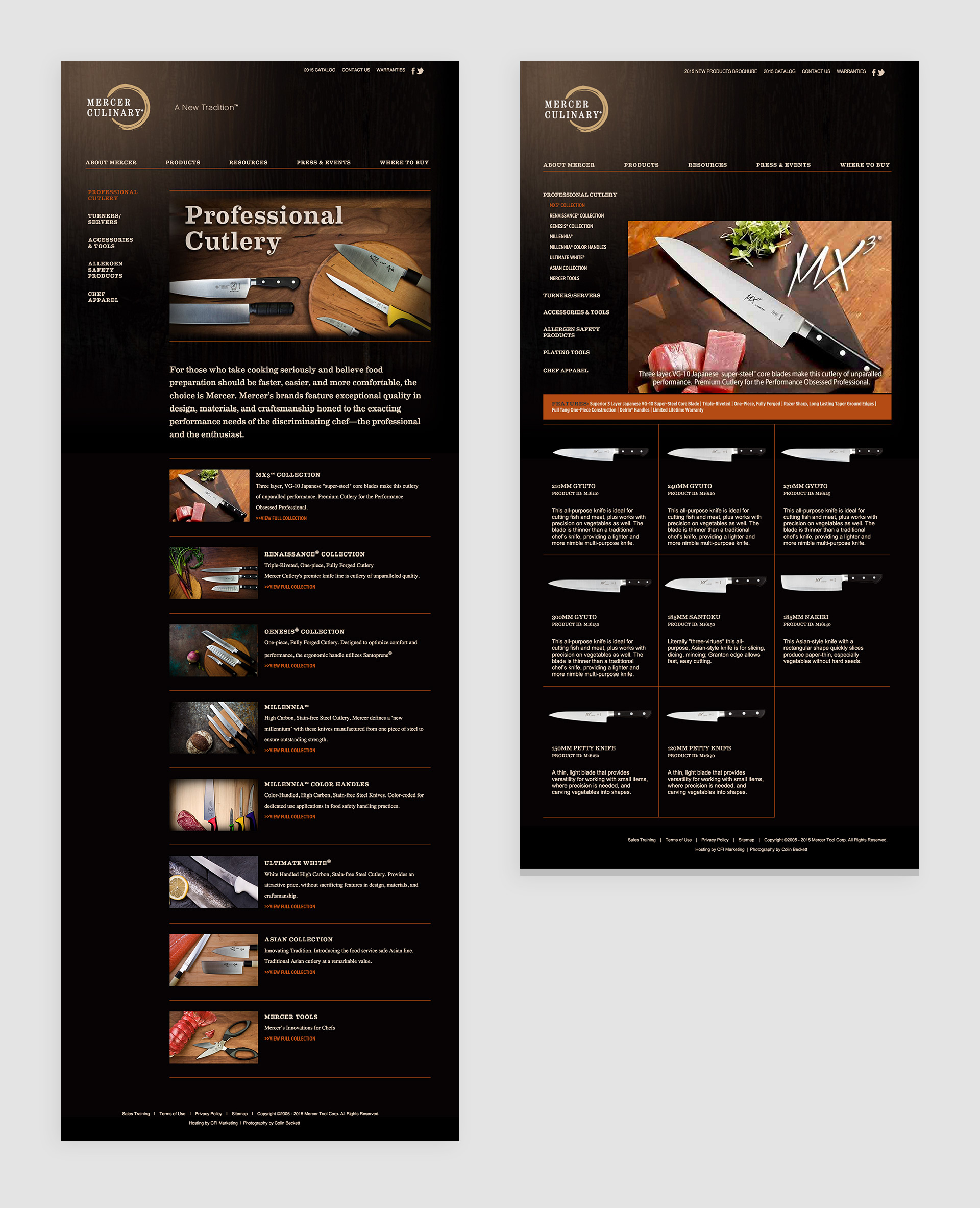Mercer Cutlery—a high-end knife and kitchen tool brand—wanted a new website that better targeted professional and aspiring chefs. I developed the site on the Drupal CMS to showcase their product catalog with added features of hover animations and how-to videos.