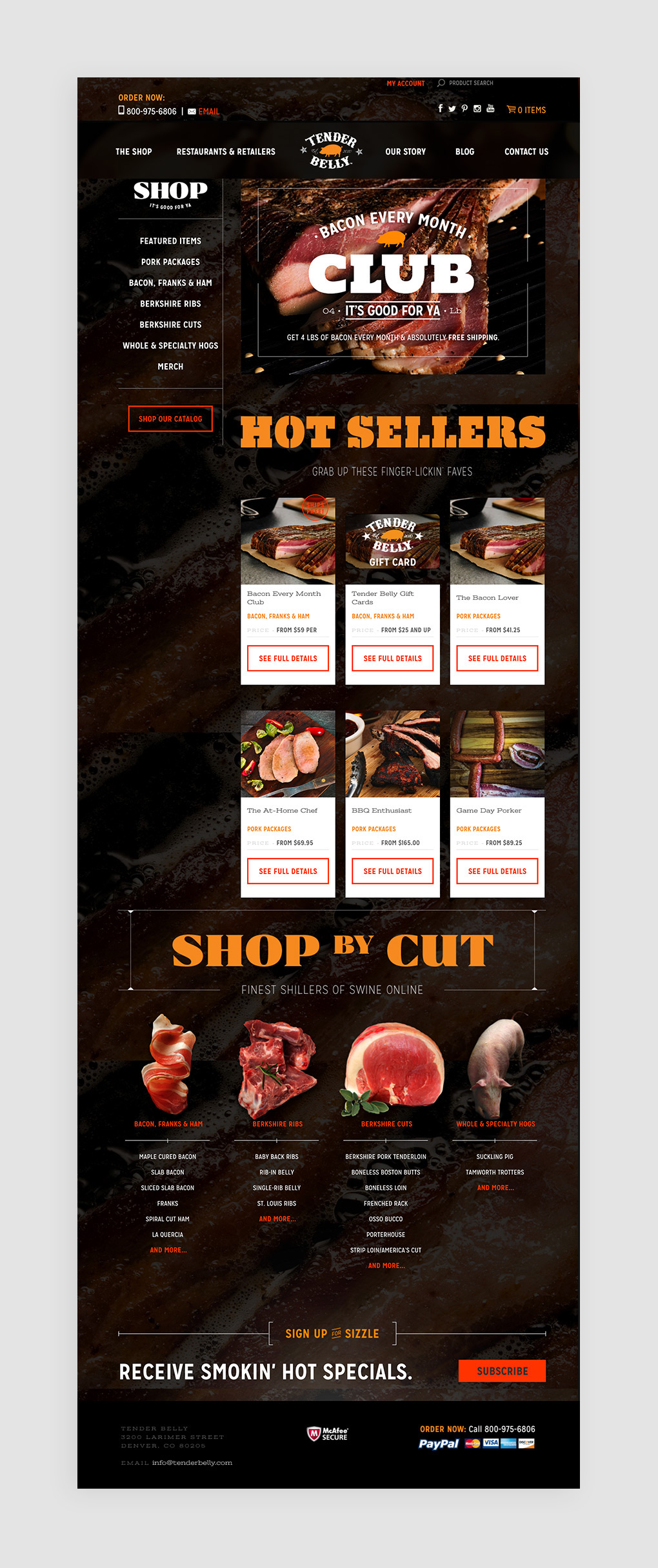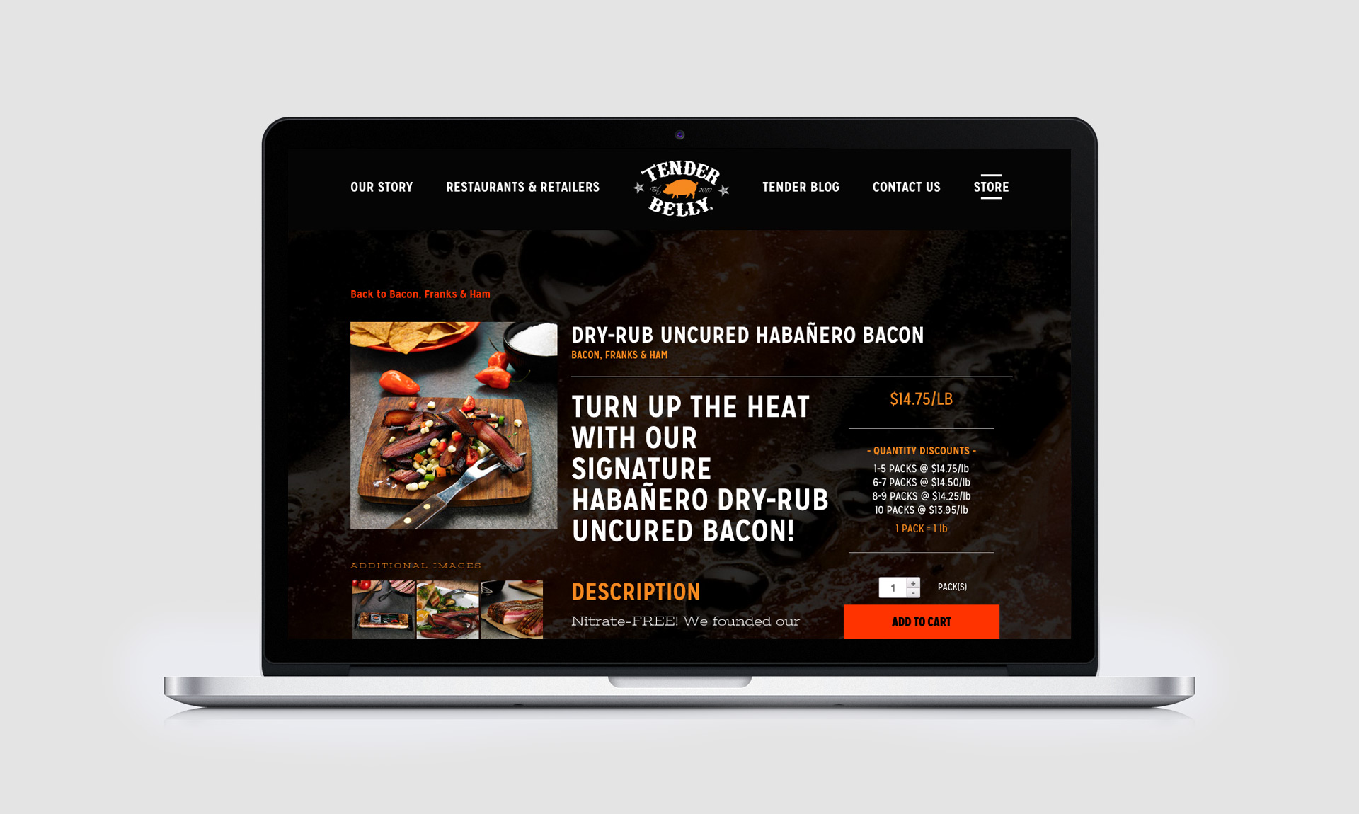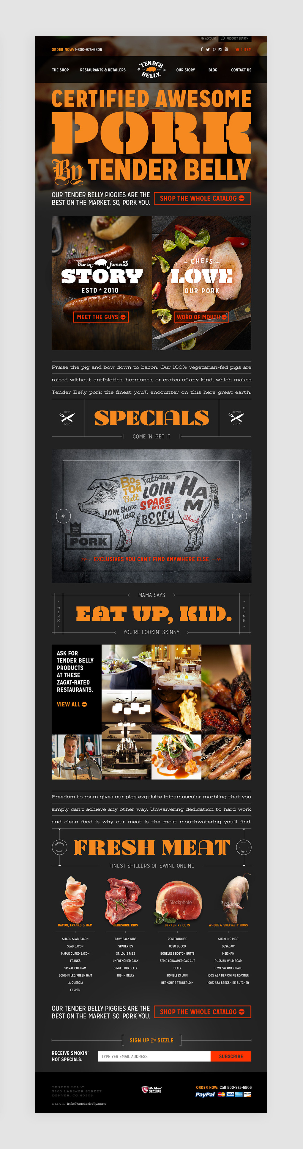 Tender Belly, a premium pork producer out of Denver, Colorado, wanted a website that reflected the great product they offered. For this exciting and edgy site, I worked on implementing a custom WordPress CMS with the Woocommerce platform. I worked really hard to achieve pixel-perfect development from the intricately designed Photoshop files.