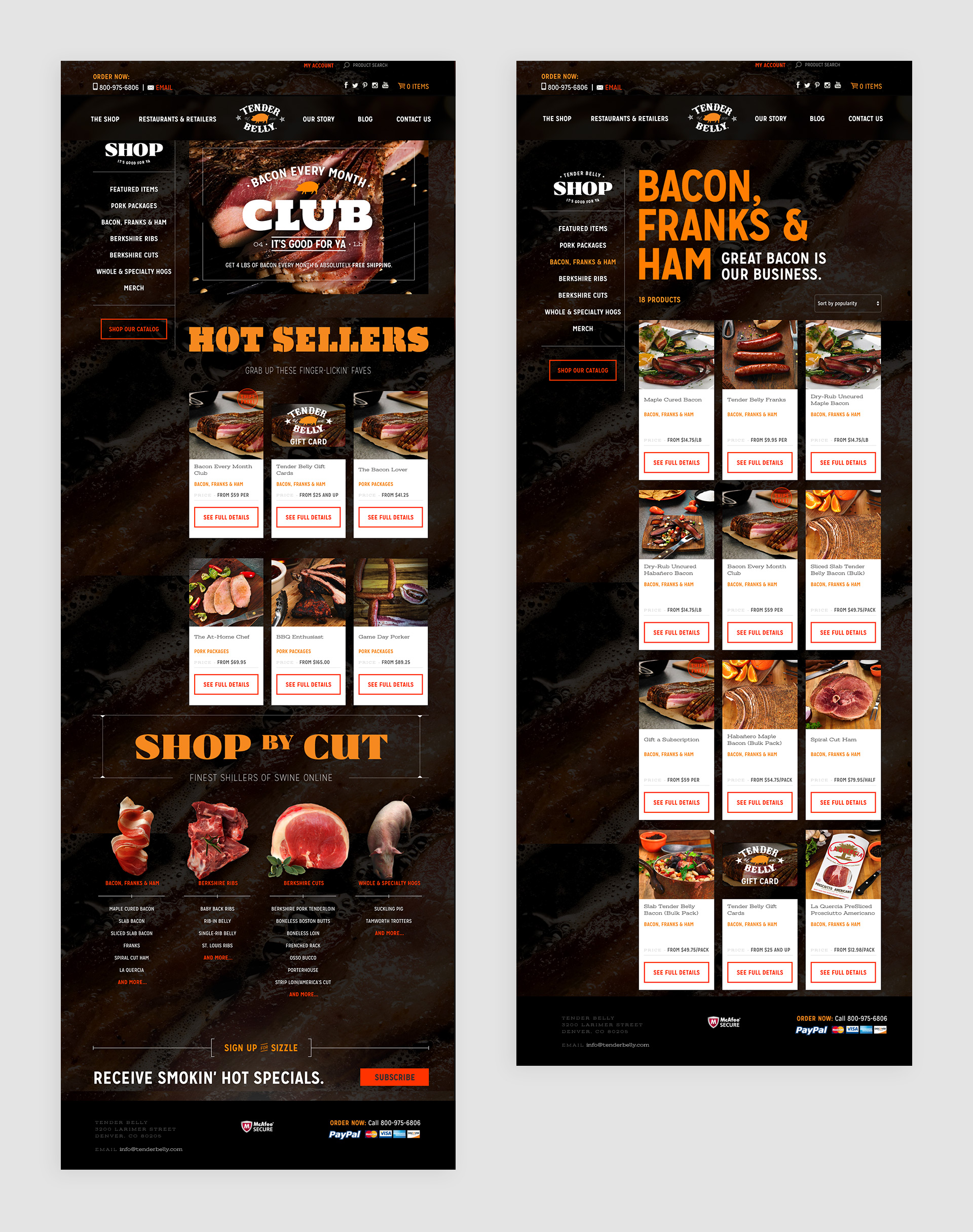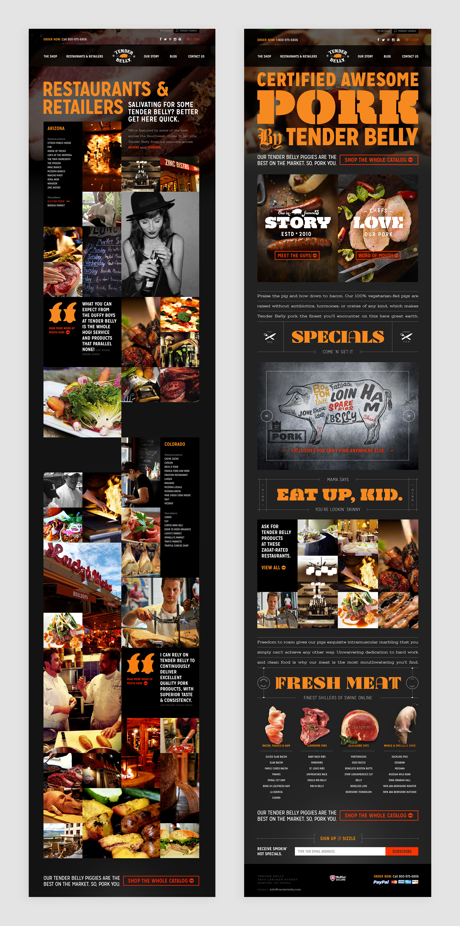 Tender Belly, a premium pork producer out of Denver, Colorado, wanted a website that reflected the great product they offered. For this exciting and edgy site, I worked on implementing a custom WordPress CMS with the Woocommerce platform. I worked really hard to achieve pixel-perfect development from the intricately designed Photoshop files.